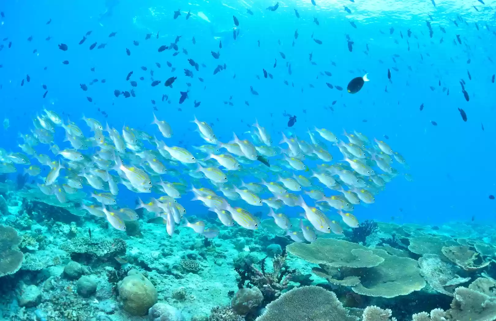 - Snorkel in crystal-clear waters at carefully selected reef locations